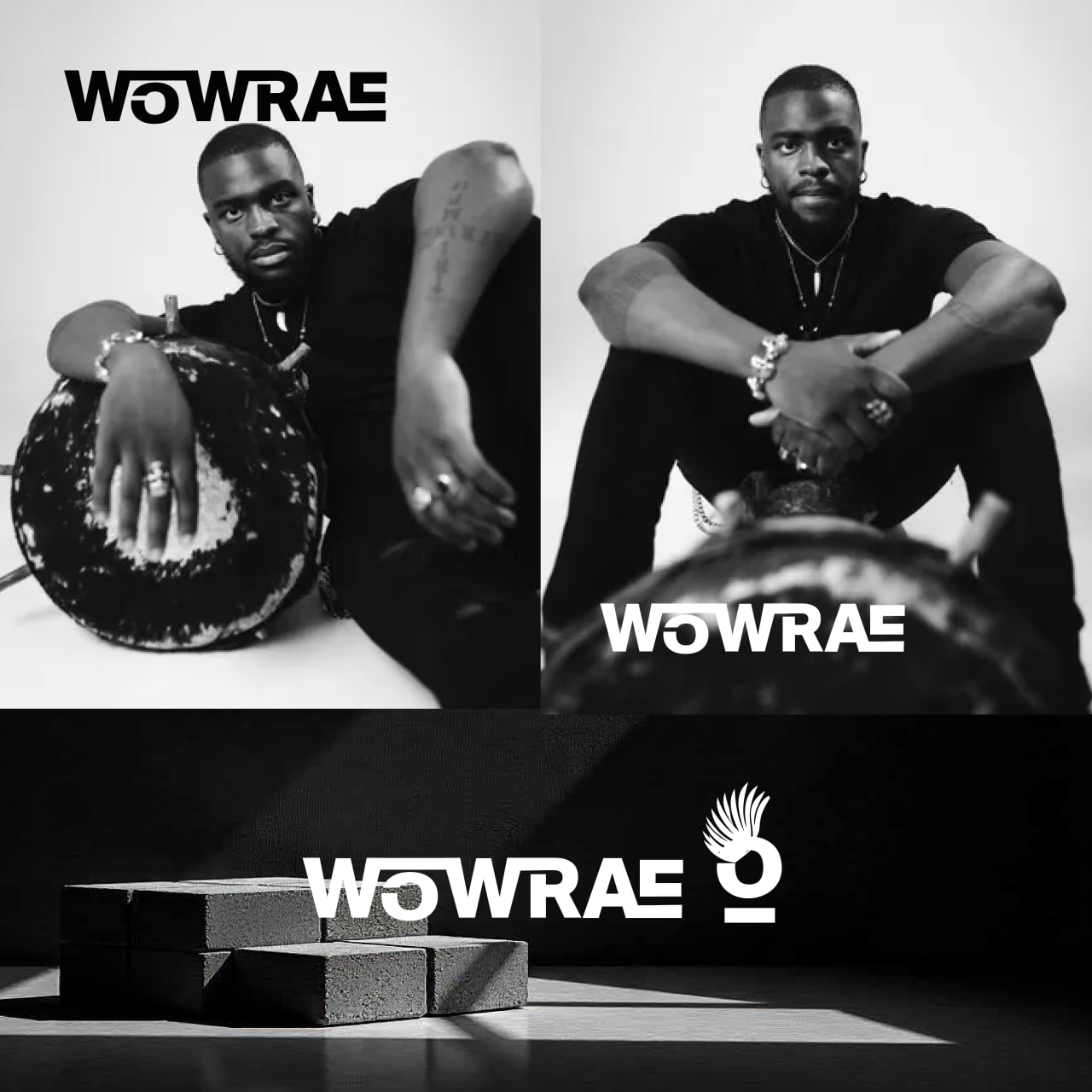With a signature look always in black, adorned with silver jewelry, chunky boots, and African-modern accessories. WOWRAE needed a visual identity that embodied his dynamic style, cultural roots, and bold personality.
