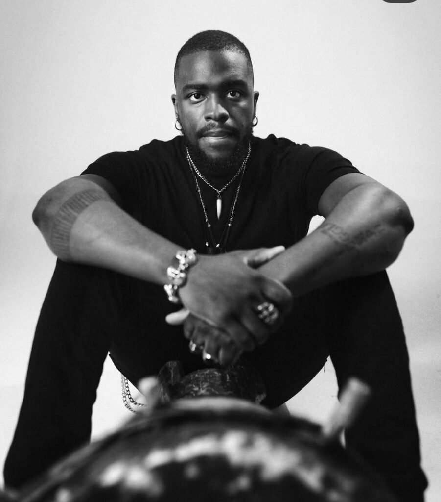 The logotype uses a chunky, custom-designed font that evokes power and presence. It was crafted to reflect the identity of a bold African man, grounded in rhythm and purpose.